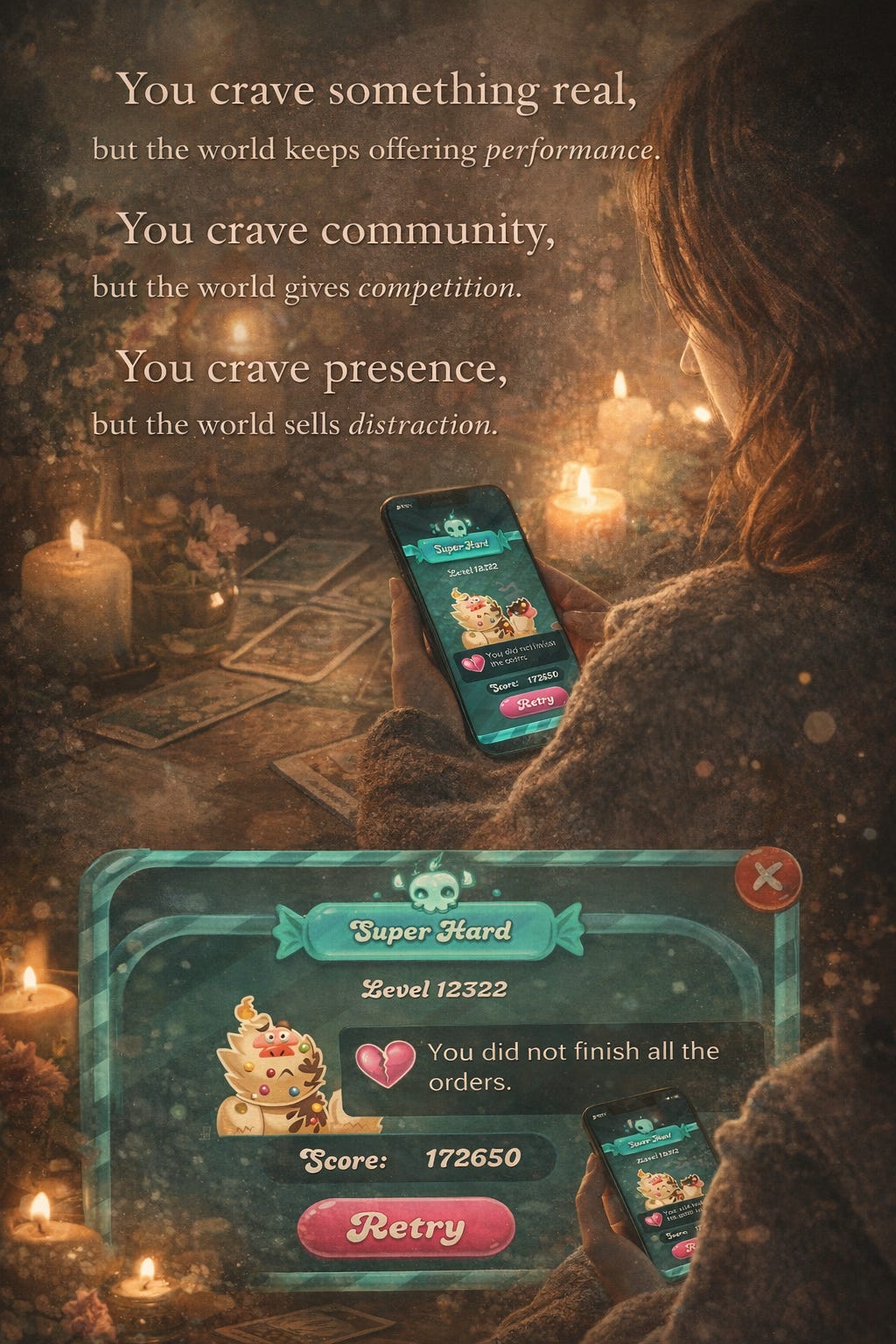 Because here's what I noticed: the moment I stopped judging myself for Candy Crush, I started a different kind of escape. I philosophized it. I astrologically contextualized it. I turned my numbness into a teaching moment. I made it mean something.