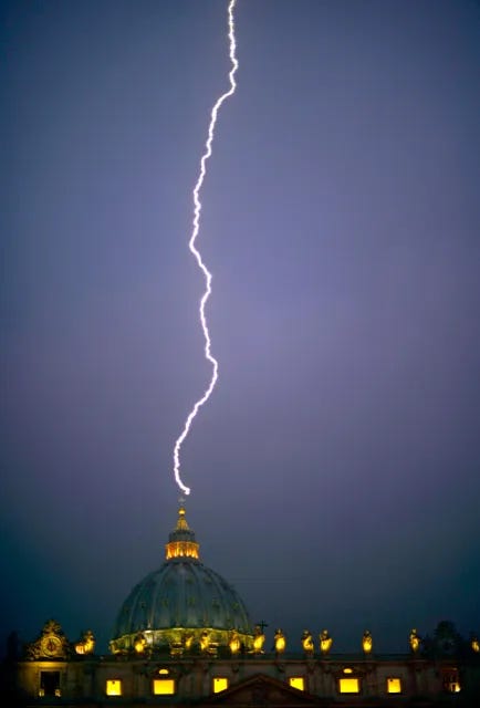 In 2013, a remarkable sequence of events unfolded that many saw as the beginning of a significant shift in our world. On February 11, 2013, Pope Benedict XVI unexpectedly announced his resignation – the first pope to do so in nearly 600 years. Remarkably, on that very same day, lightning struck St. Peter's Basilica at the Vatican twice, captured in a stunning photograph by Filippo Monteforte that quickly circulated worldwide[^1].